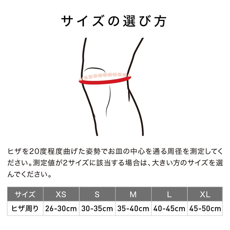 - Size (measurement position knee circumference): XS, S, M, L, XL XS size: 26-30cm S size: 30-35cm M size: 35-40cm L size: 40-45cm XL size: 45-50cm