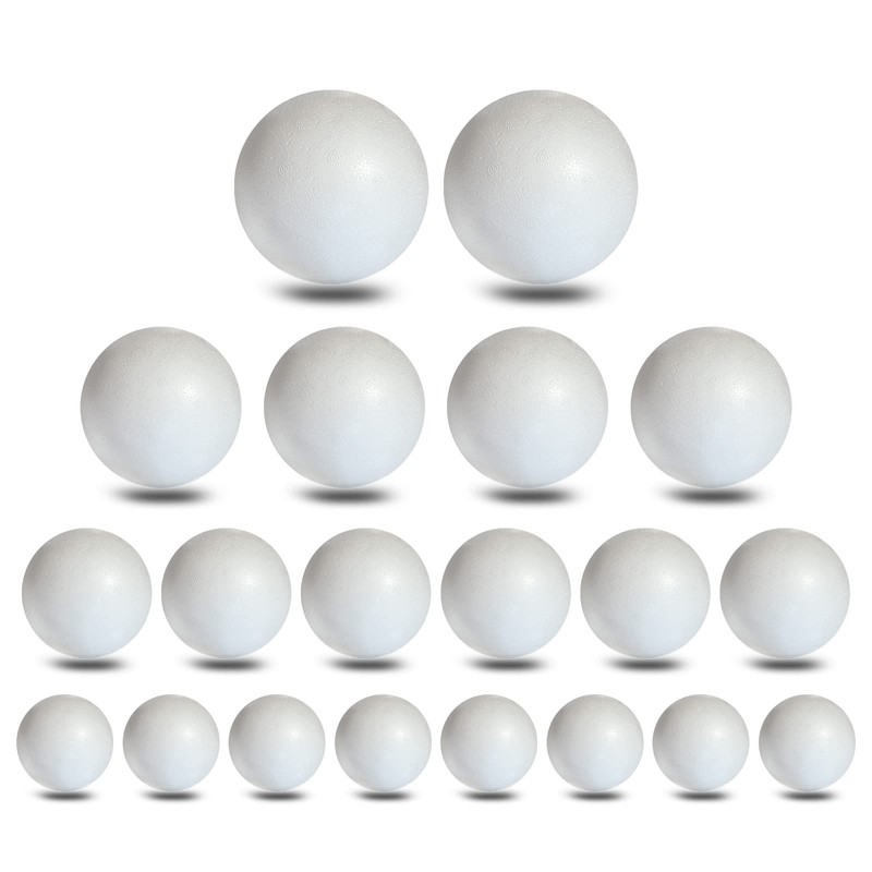 - Polystyrene ball mix 20 pieces. In 4 sizes: 2 x 8 cm; 4 x 7 cm; 6 x 6 cm; 8 x 5