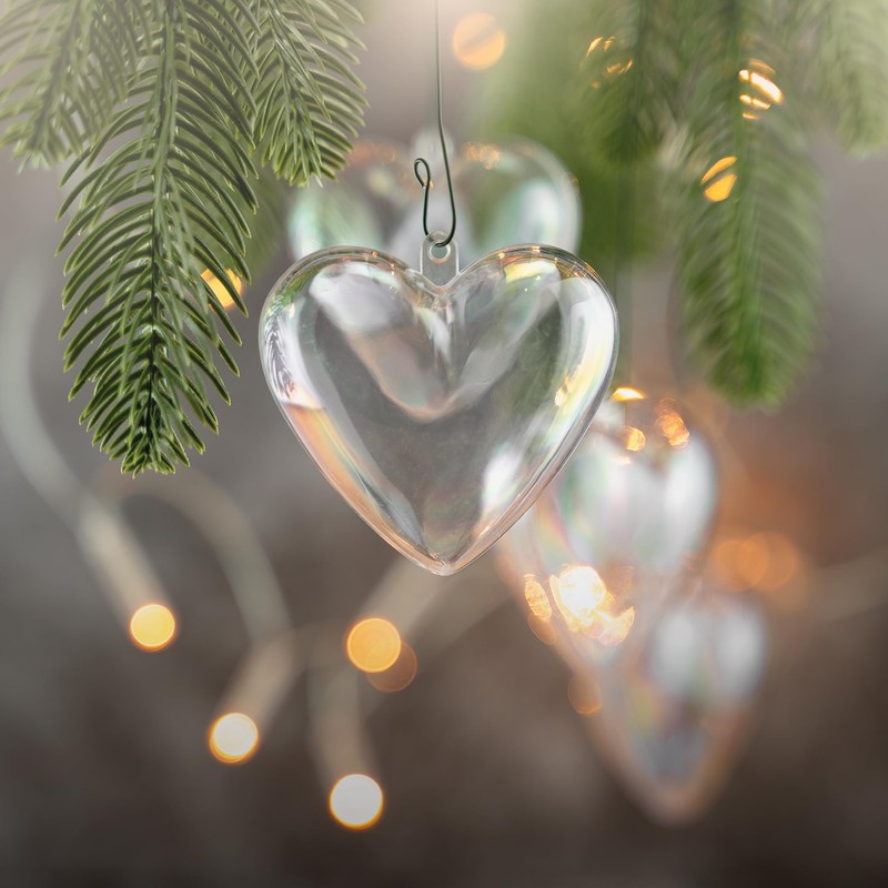 • Acrylic shapes set crystal clear with eyelet for hanging, 2 pieces