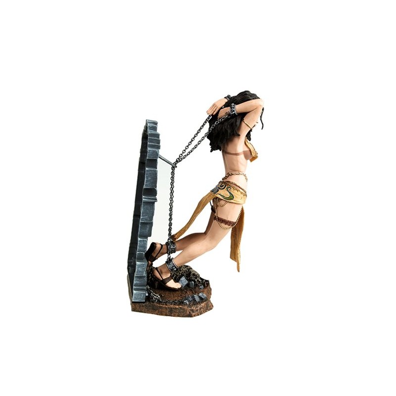 • Beautiful harem girl comes packaged with a two-part dungeon wall base and real chains.