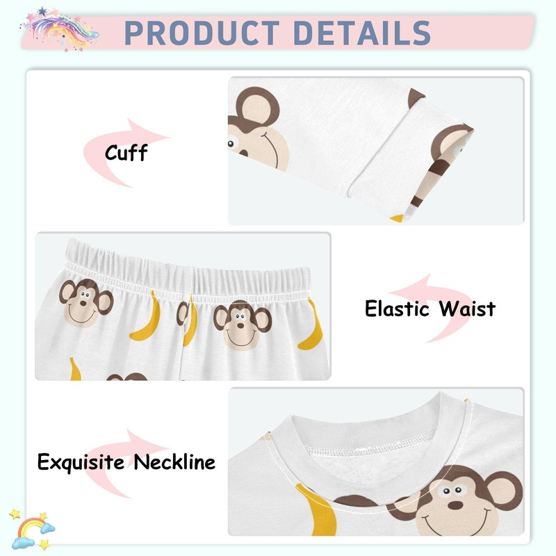 MCHIVER Cute Monkey Banana Pajamas Set 2 Piece Cotton Pjs Set Long Sleeve Sleepwear Prints Top and Bottom Size 5Y