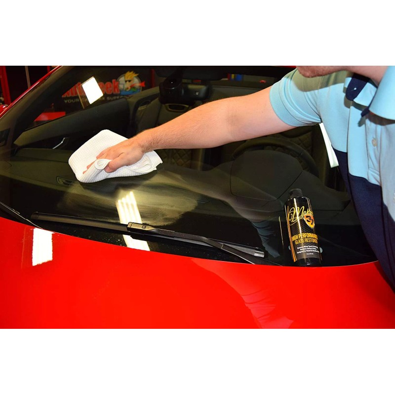 McKee's 37 High Performance Glass Restorer removes mild etched water spots from glass and restores perfect clarity. The unsightly cloud of water spots that exists on the windshield out of the wipers' range can be removed!