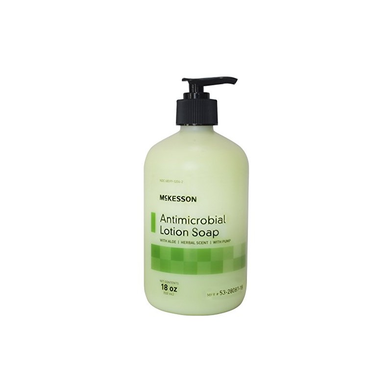 McKesson Antimicrobial Lotion Soap with Pump, Aloe, Herbal Scent, 18 oz, 12 Count