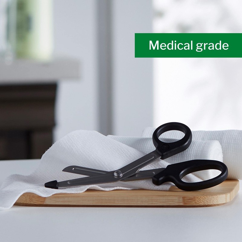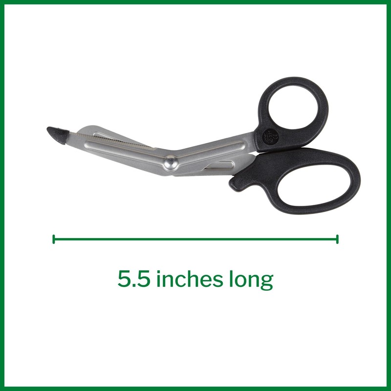 - Medical grade trauma shears are durable and strong, featuring a curved edge to be gentle near the skin and an serrated edge to cut strong materials. Blades are 5.5 inches