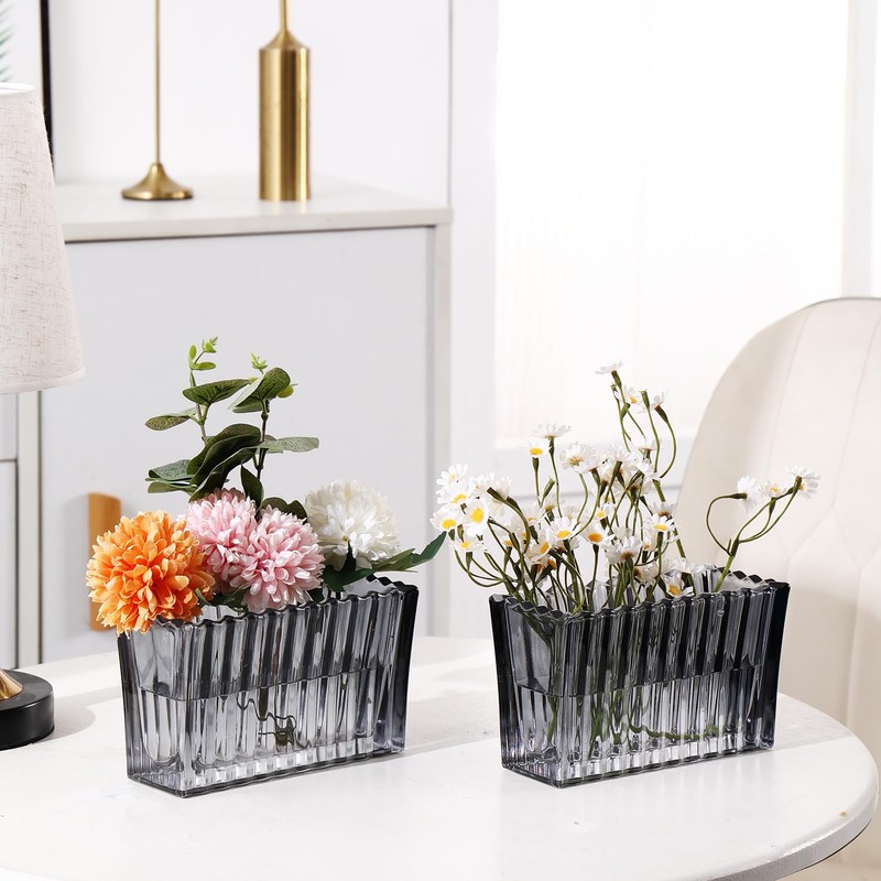MCMCNCUIU Crystal Vases, Glass Vases for Flowers, Flower Vases Set of 2, Black Glass Vases, Rectangle Vases for Centerpieces, Small Vases Living Room, Bedroom, Kitchen, Dining Table, Wedding