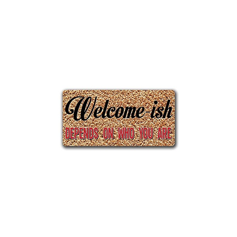 McMug - Welcome-ish - Depends On Who You Are (Doormat Style) - Metal Sign, Decorative Sign, 200mm x 100mm