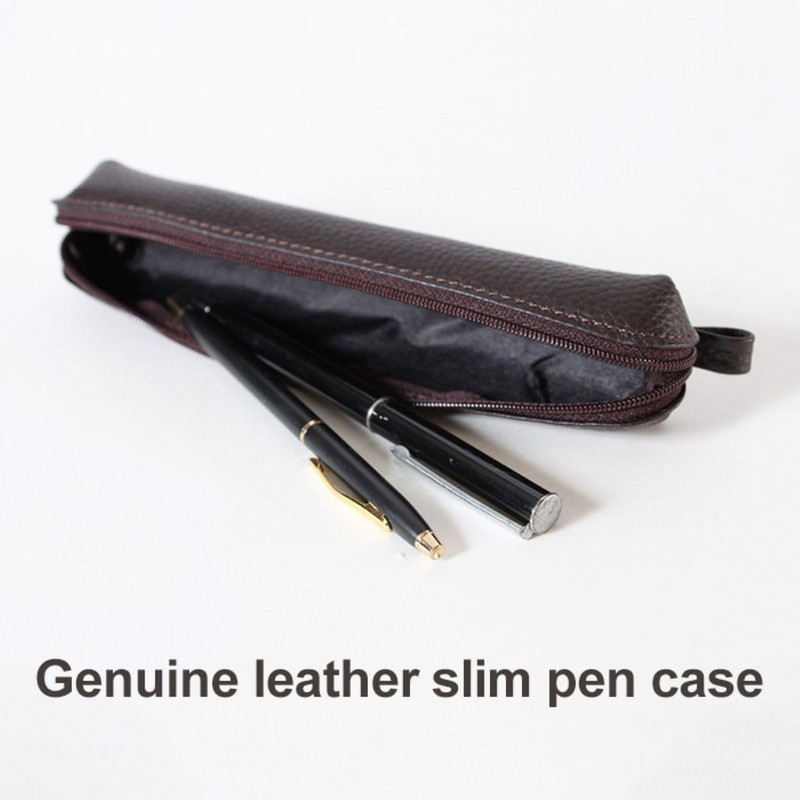 MCN003 Genuine Leather Slim Pencil Case Slim Compact Simple Business People Cowhide Grain Leather, Black, Minimalist