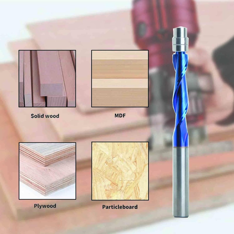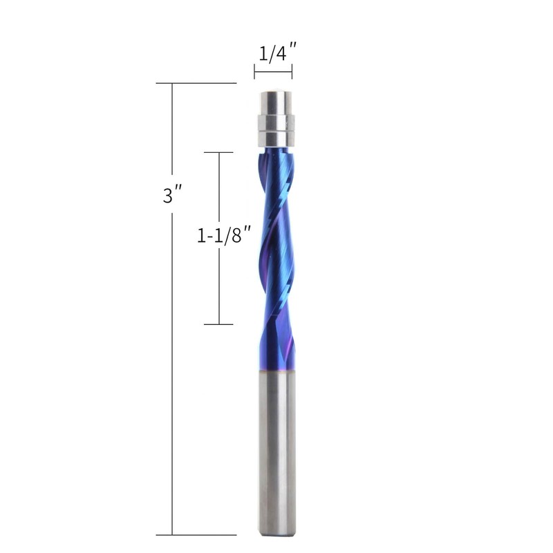 MCOLLNAS Spiral Flush Trim Router Bits 1/4 Inch Shank,Carbide CNC Milling Cutter Drill Bits, with Nano Blue Coating