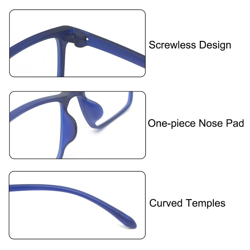 - Special Design:Unlike other eyeglasses, we have a unique interlocking system which does not use screws which get loose in order to keep the temples in place and pivot well. Most of the reason eyeglasses break is the cheap way the screws are put in and when they get loose glasses fall apart. With our unique method of interlocking the temples onto the main frame of the glasses in a clicking mechanism, it totally eliminates the temples from ever becoming loose on your pair of eyewear.