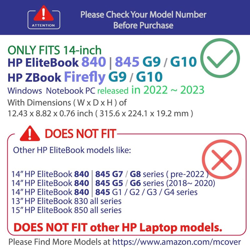 - Designed specifically for 2022-2023 14-inch HP EliteBook 840 & 845 G9/G10 series laptops with dimensions 12.43 x 8.82 x 0.76 in