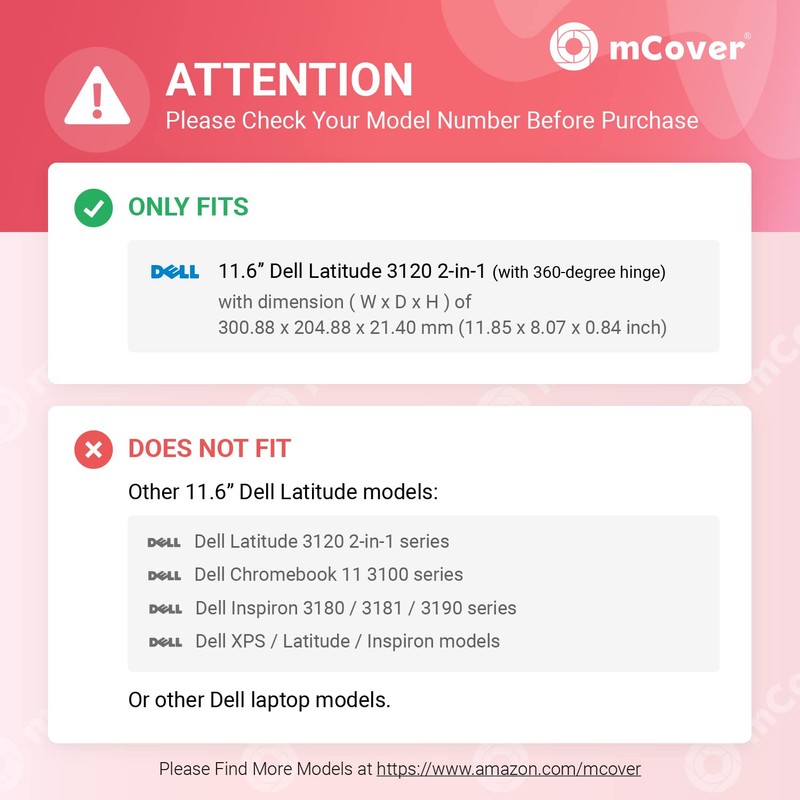 - NOT compatible with any other Dell Latitude series ( including Dell Latitude 3120 Clamshell Laptop with 180° hinge) and any other Dell / non-Dell laptop models