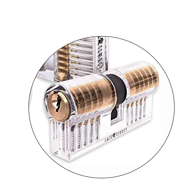 Mcvcoyh Lock Pick Set, 5 Piece Lock Picking Tools + 1 Transparent Training Locks for Beginner and Locksmith Training (Transparent)