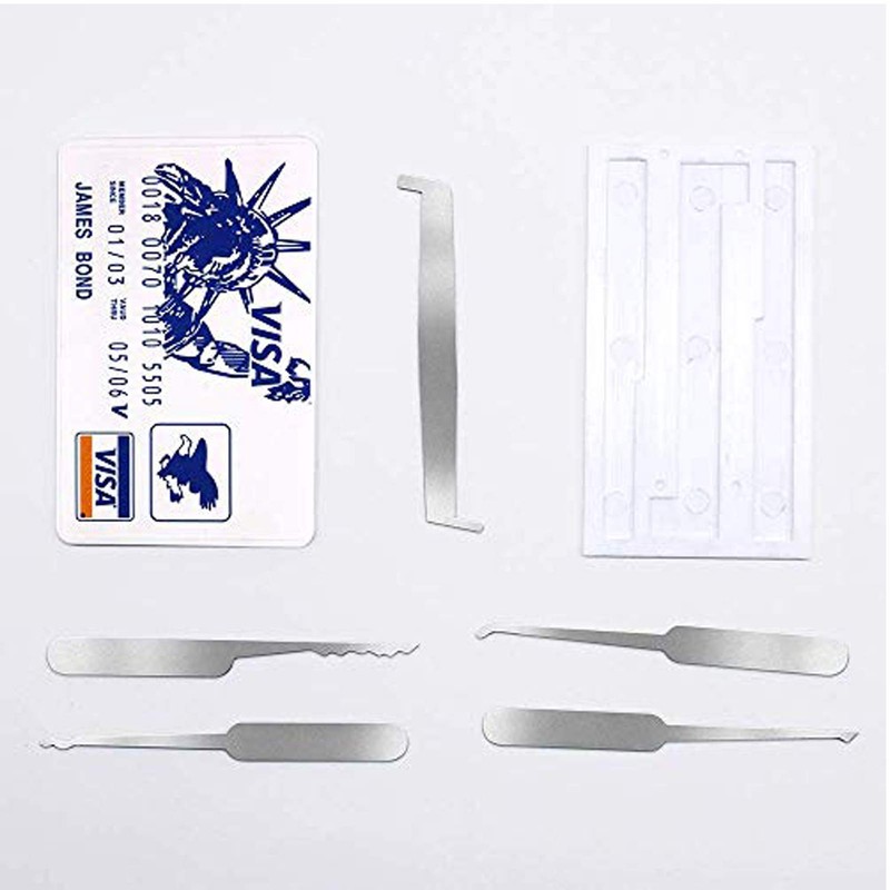 - ★304 Stainless Steel, Include package: Credit Card 5 piece lock pick tools + 1 locks + 2 keys.