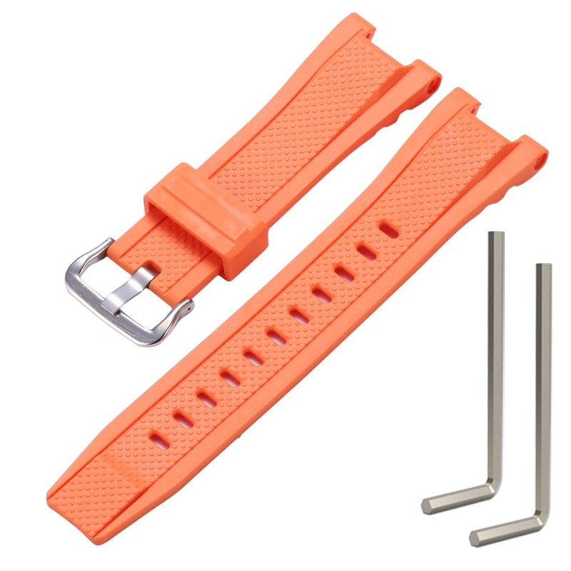 MCXGL Compatible with Gshock Resin Strap Replacement for Casio GST-210 GST-W110 GST-W100 GST-S110 GST-S100 GST-B100 GST-S300 Watch Band, Orange silver buckle, 26mm, Men's mesh belt