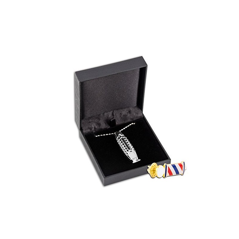 - Comes with Barber Pole Lapel Pin