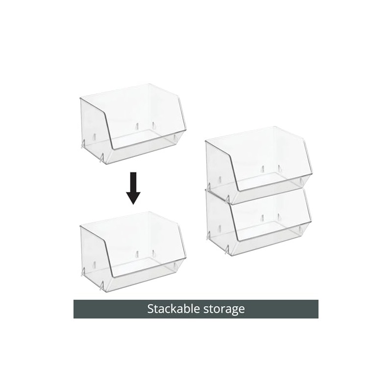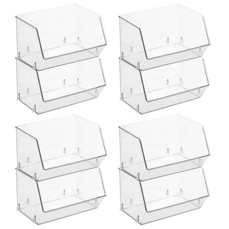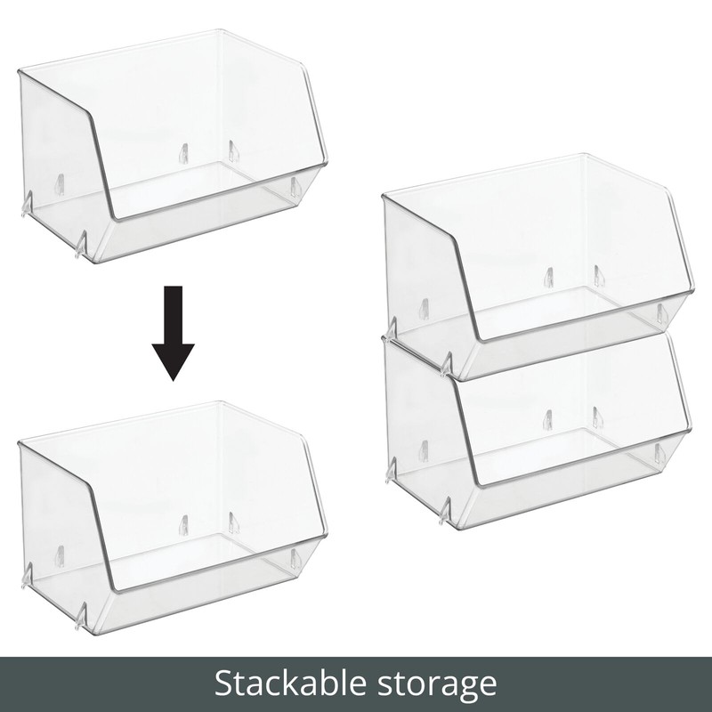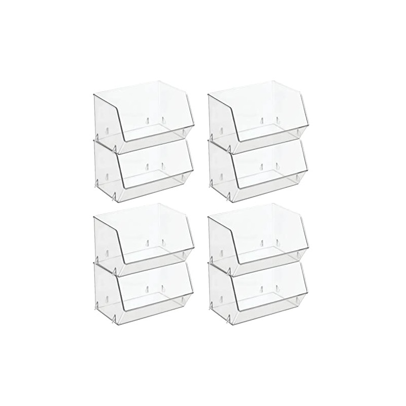 mDesign Plastic Open Front Food Storage Bin for Kitchen Cabinet, Pantry, Shelf, Fridge/Freezer - Organizer for Fruit, Potatoes, Onions, Drinks, Snacks, Pasta - 8 Pack - Clear