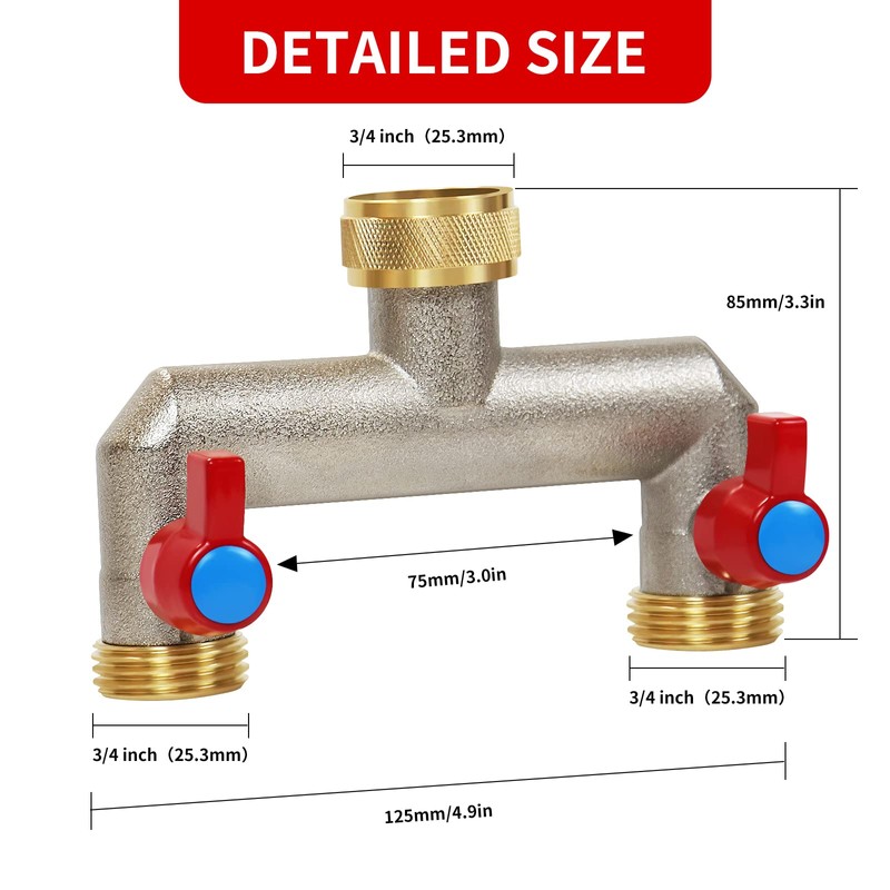 - Size: The tap splitter has a 3/4 inch connection, making it compatible with most garden hoses and kitchen faucets.