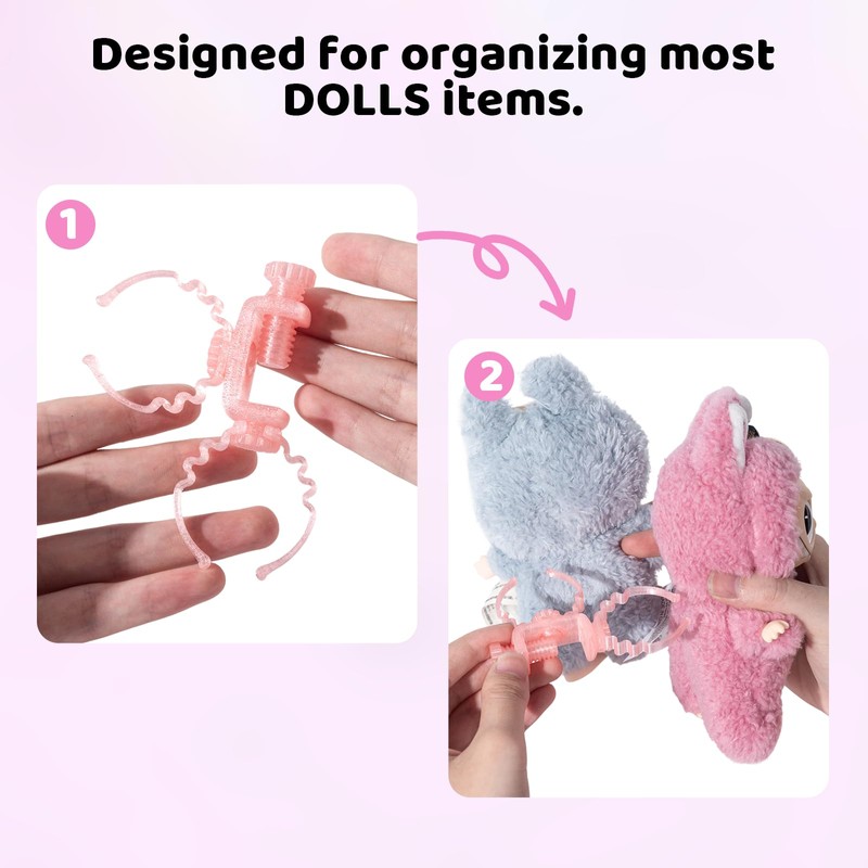 - ✨ Effortless Setup for Instant Display Dual adjustable hooks cradle two 4-8" LABU dolls with long pointy ears - simply attach to any surface in seconds, no tools needed.