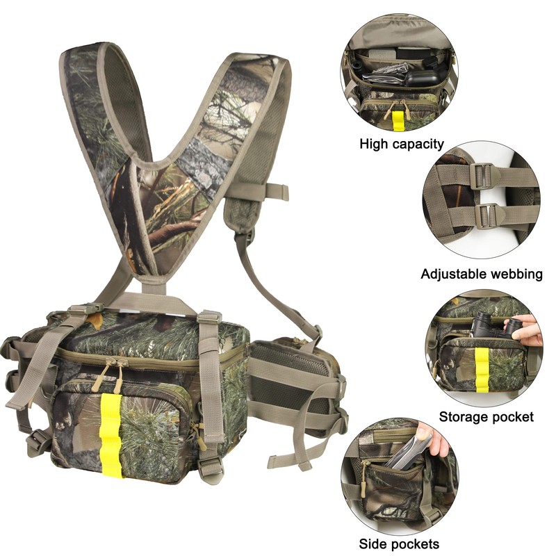 MDSTOP Hunting Fanny Pack, Waist-Pack Style Hunting Pack, Camo Hunting Fanny Waist Pack with Shoulder Straps and Harness Pouch, Available in Backpack and Lumbar Pack Styles