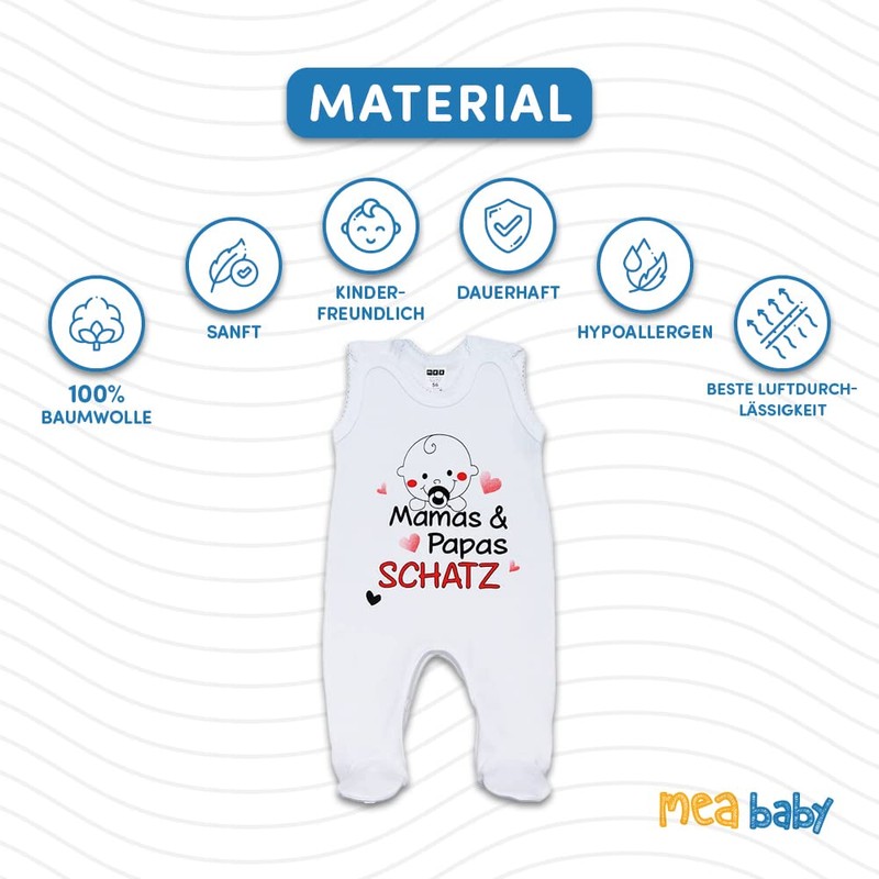 MEA BABY Unisex Baby Romper with Saying Mamas & Papas Schatz, 100% Cotton, White Baby Romper for Girls, Baby Romper for Boys, Boys.