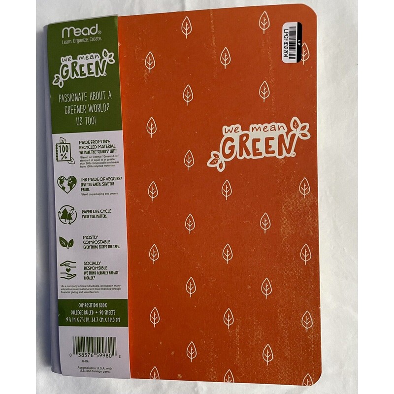 Mead Composition Book 90 Sheets College Ruled - Recycled Orange.
