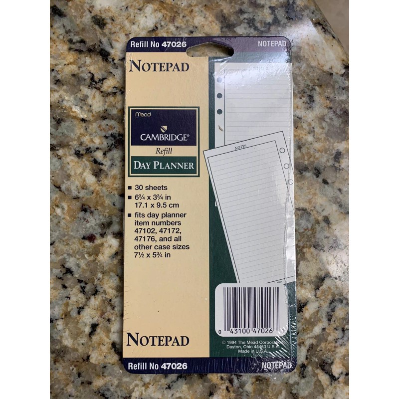 New Mead Cambridge Planner 47026 Refill Undated Block Notes 30 Sheets Franklin Day Runner sealed in original plastic wrap. Sheet size is 6.75 x 3.75 inches or 17.1 x 9.5 cm. Please see pictures.