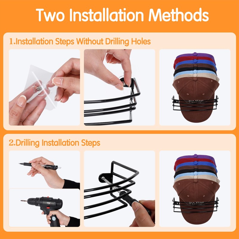 • Easy Installation Options: Our baseball hat storage organizer comes with screws and adhesive hooks, offering two installation methods to suit your needs. Enjoy hassle-free installation, and organize your hat collection effortlessly.