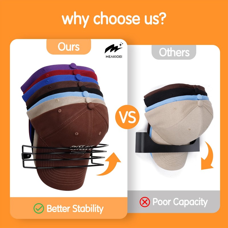 MEAKIOEI 2-Pack Hat Organizer for Baseball Caps, Hat Rack for Wall, Cap Holde...
