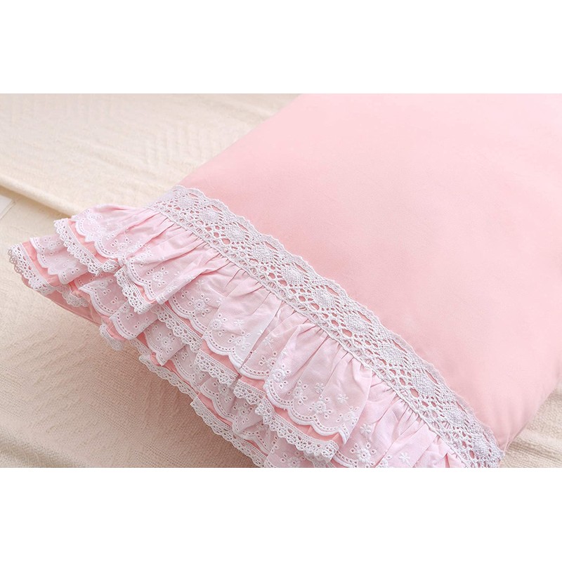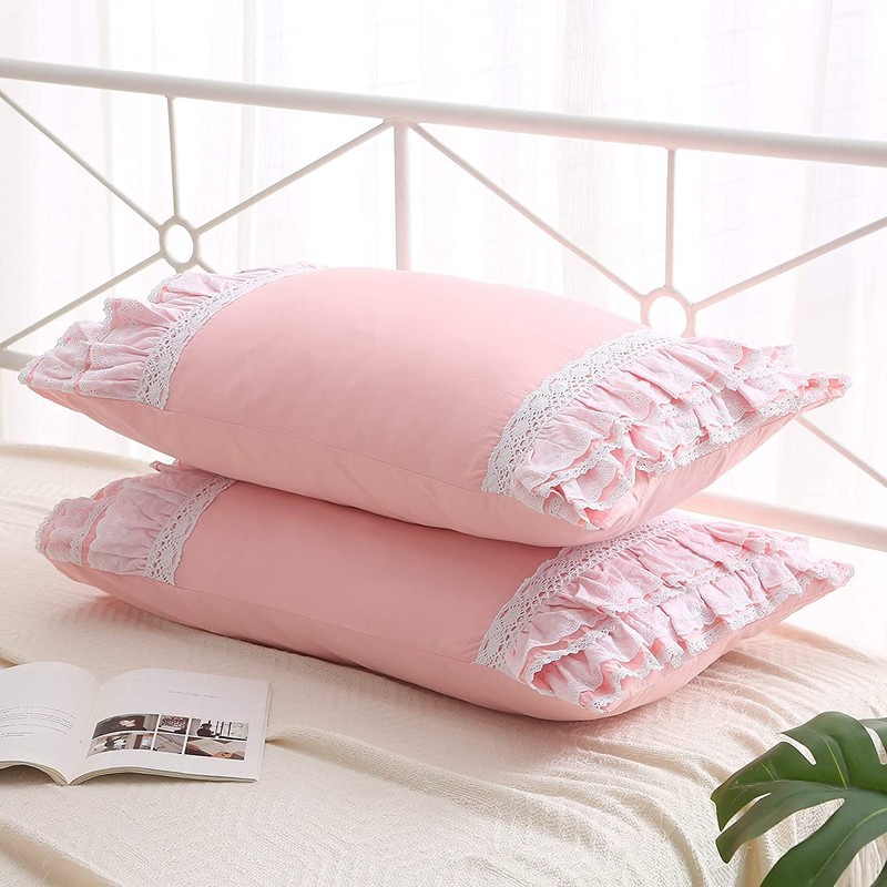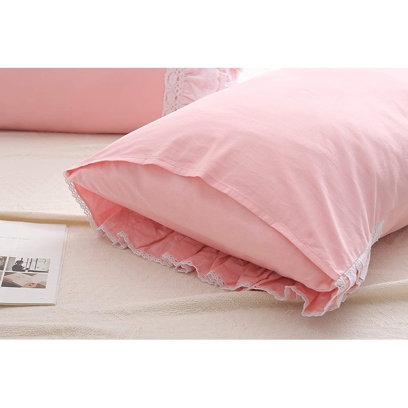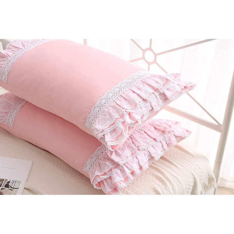 Meaning4 2-Pack Pink Pillow Shams Cases Covers with Ruffles and Lace Cotton King Size 20"X36"Soft Boudoir Luxurious