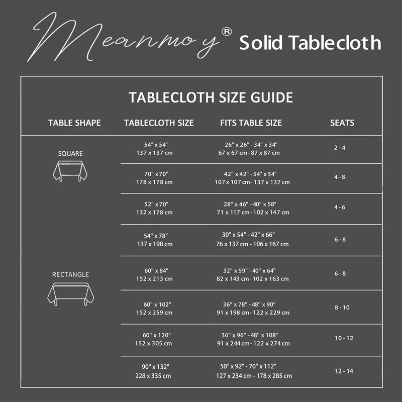 - HEAVY DUTY POLYESTER & WATERPROOF: MEANMOY tablecloth is constructed on a hydraulic loom from 210 GSM (a measure of the weight and thickness of the fabric) spun polyester with water repellent, the result is a tightly woven, water-resistant yet durable smooth textured finish. This microfiber table cover got a thicker texture and higher density, which drives you away from the embarrassment of seeing through