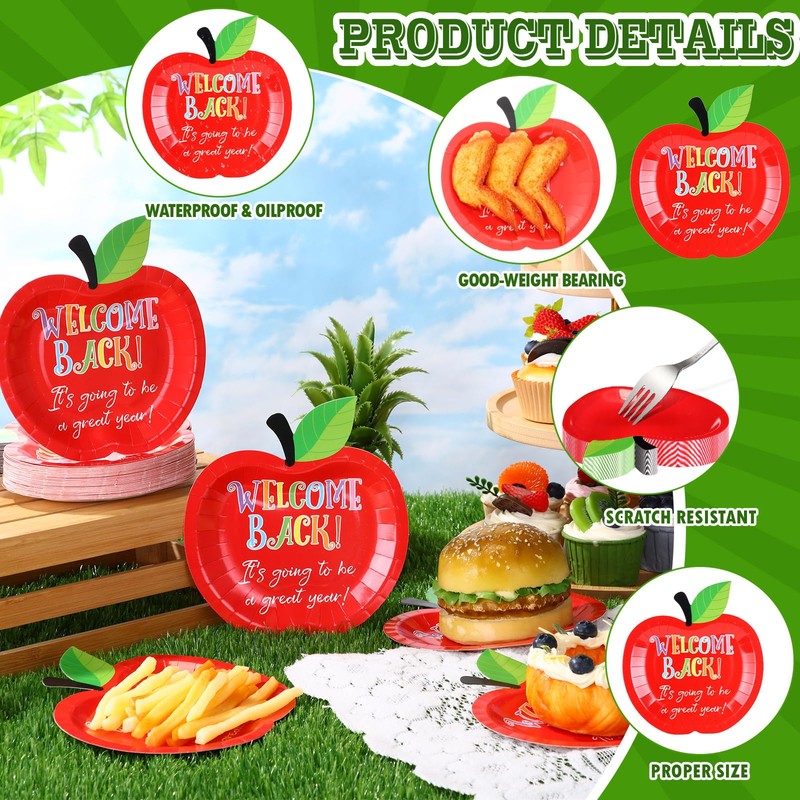 - Adds a Festive Touch to Any Event: these red apple paper plates double as delightful decorations, enhancing the visual appeal of your welcome back event or first day of school party; Easily liven up any school occasion with this charming tableware