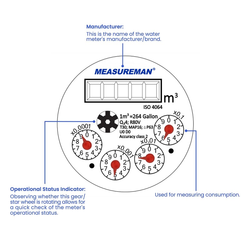 MEASUREMAN 3/4" Non-Pulsed Multi-Jet Gallon Vertical Water Meter Blue Brass Body 20mm Flow Garden Hose Outdoor Measurement