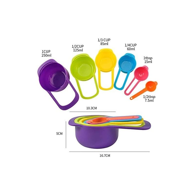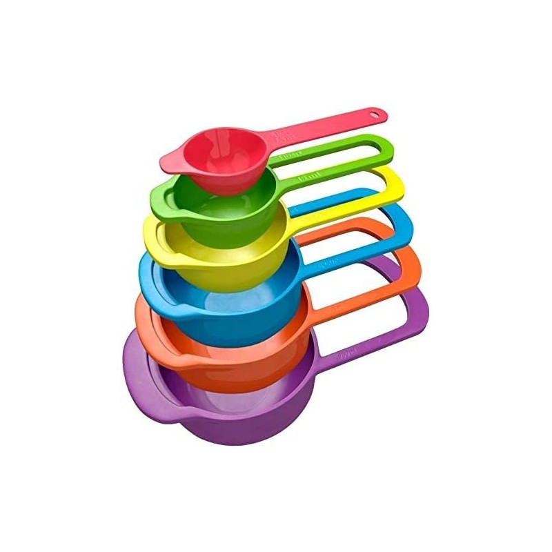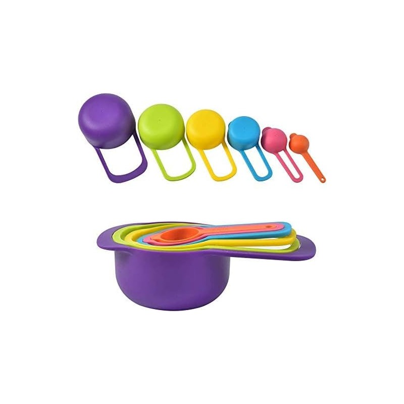 Measuring Cup and Spoon Set of 6 Food Grade Multicolor Space Saving Stackable Baking Tools