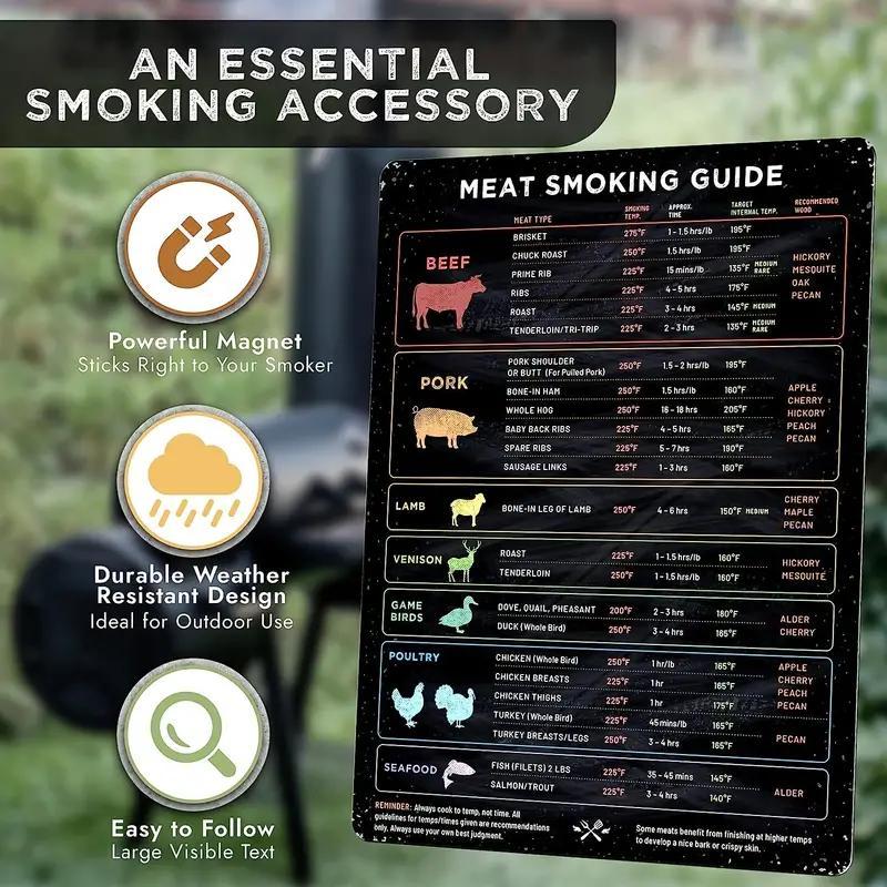 Meat Smoking Guide Magnet, Meat Smoking Temperature Magnet, Cooking Time Magnet, Barbecue Accessories