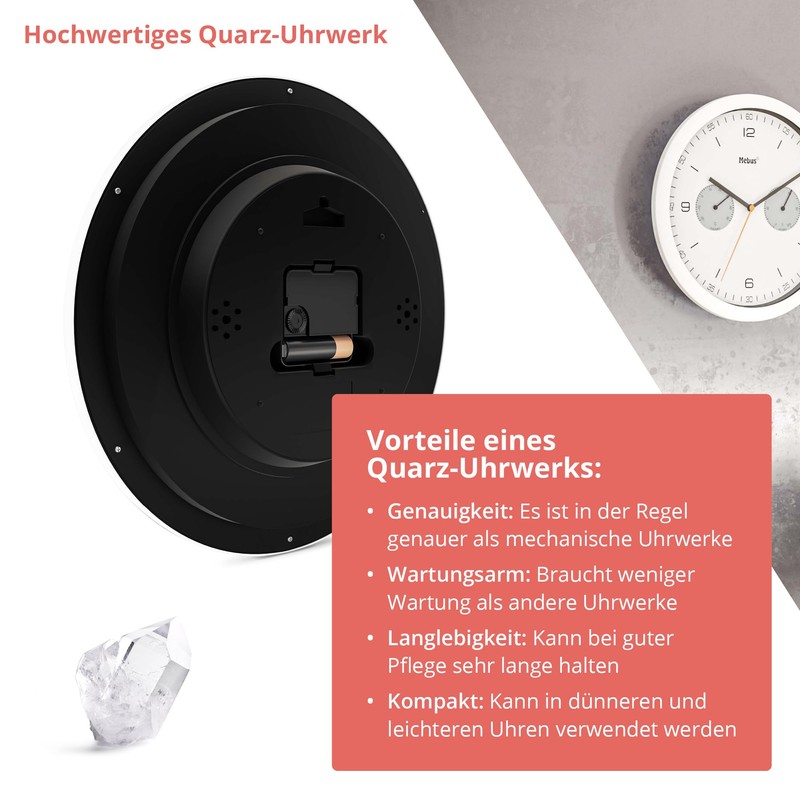 - HIGH QUALITY QUARTZ MOVEMENT: A small quartz crystal ensures smooth running. This reliably displays the correct time and avoids deviations. You can rely on it