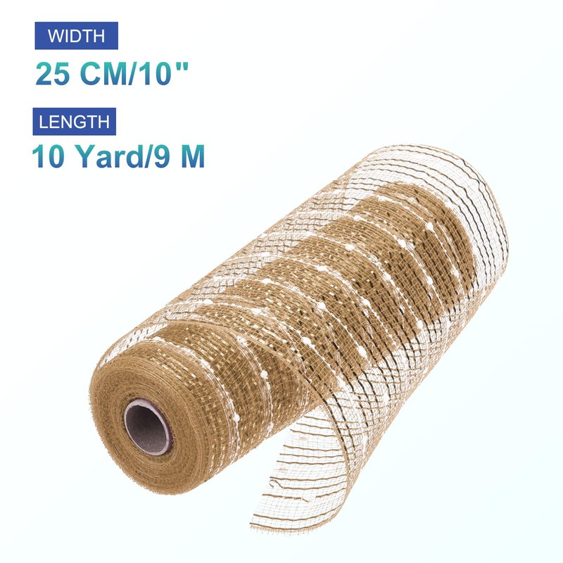 MECCANIXITY 10 Inch Glitter Poly Burlap Mesh for Wreath, Decorative Mesh Fabric Ribbon 10 Yard for Fall Easter Christmas Flower Bow, Brown & White