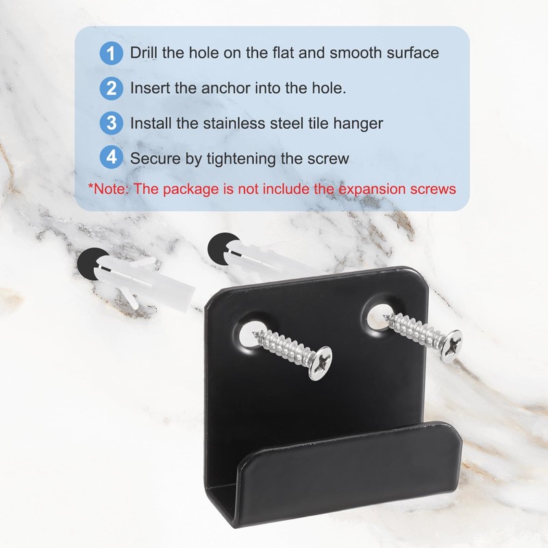 Easy installation, mount the stainless steel tile hangers using the provided screws, tighten them, and effortlessly slot tiles, mirrors, or frames into the hanger's groove.