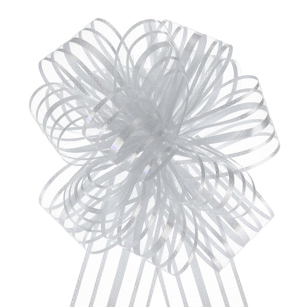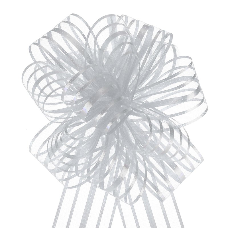 MECCANIXITY 10pcs 4 Inch Large Pull Bow Gift Wrapping Bow Ribbon Organza Silver for Wedding Baskets Presents Christmas Party