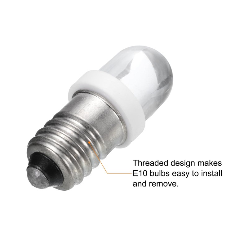 - Advantage: Miniature screw base light bulbs can emit a bright, warm light using only a small amount of power needs.The E10 screw base light bulbs is tiny and easy to store,it won't take too much space in your home.