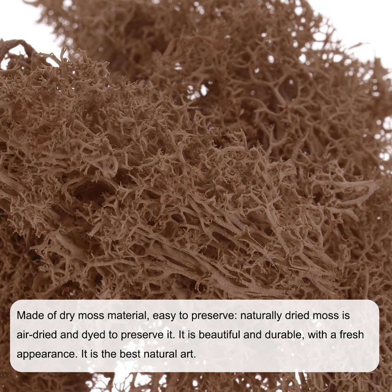 - Natural craft moss,Color:Coffee;Material:dry moss;The Preserved Moss comes in a box with 3.5 OZ Moss;Package includes:1PCS x Preserved Artificial Moss;