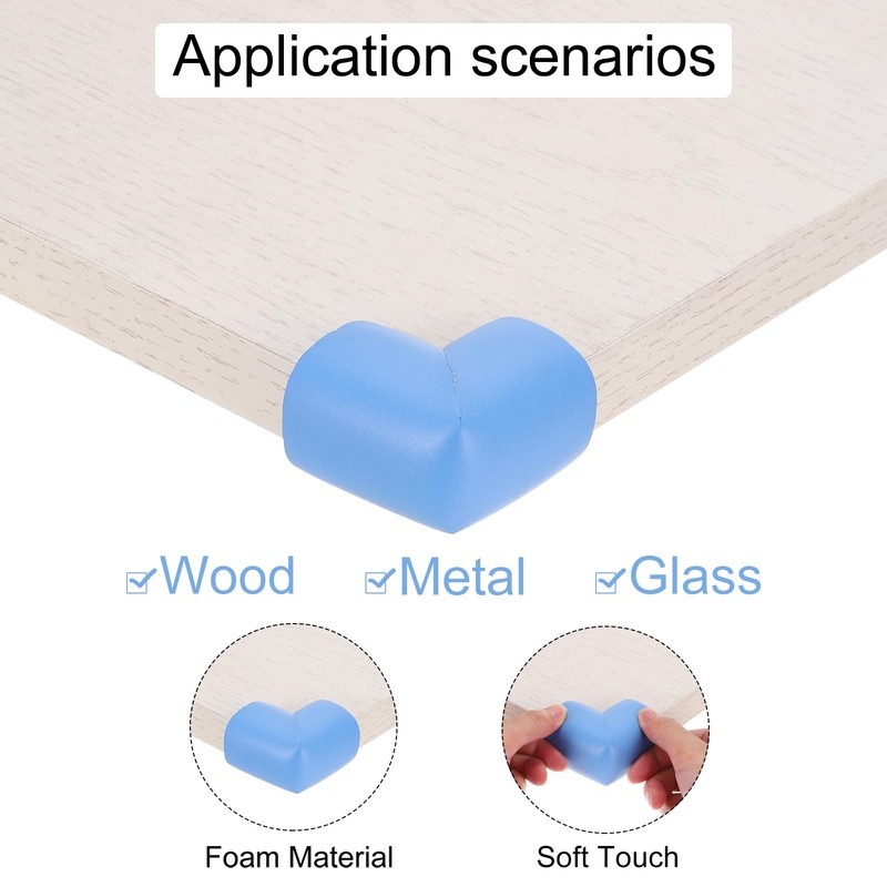 - Soft corner protectors can be installed on table corners, chair backs, furniture edges, etc. to protect child from accidentally hitting their heads while studying or eating. Stick them on the edges of furniture, such as cabinets, bed frames, etc. to prevent child from getting hurt while playing. Use them on wood, glass, steel and ceramic surfaces to make your safe.