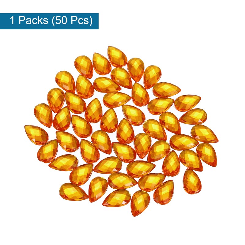 - Size: 6mm x 10mm/0.24" x 0.39" (W*L); Thickness: 6mm; Material: Acrylic; Color: Yellow; Shape: Teardrop; In the package of: 50pcs x Flat back acrylic gemstone in 1 pack