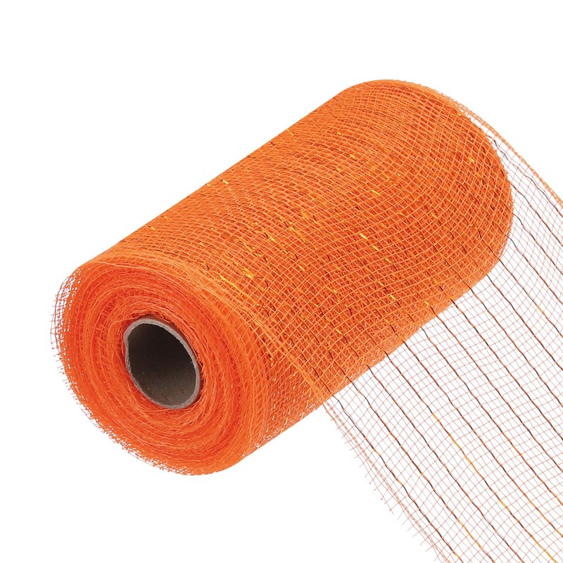MECCANIXITY 6 Inch Glitter Poly Burlap Mesh for Wreath, Decorative Mesh Fabric Ribbon 10 Yard for Fall Easter Christmas Flower Bow, Orange