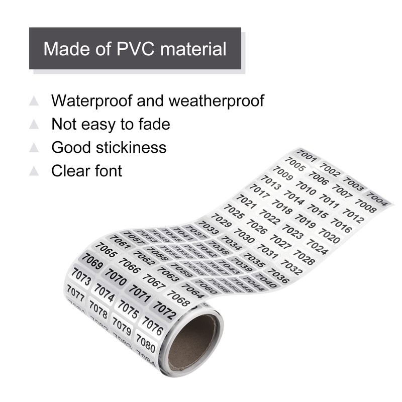 MECCANIXITY 7001 to 8000 Consecutive Number Stickers Inventory Label Black Numbers for Office Warehouse Numbering Classification