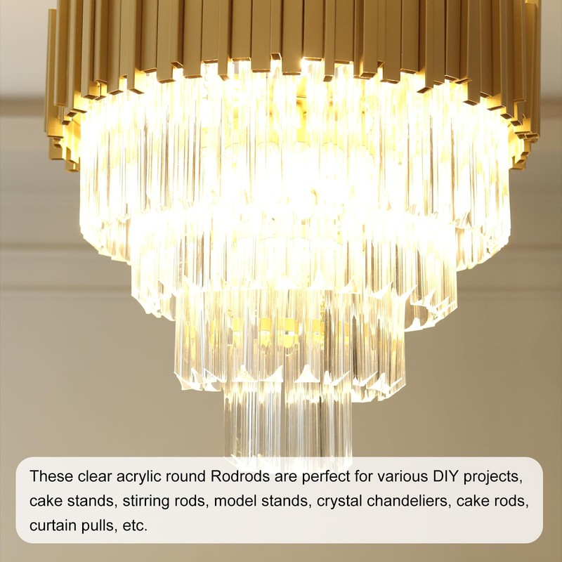 - Clear acrylic rods are durable, tougher than glass, but lighter. With clear colors, simple and beautiful appearance, Acrylic plastic rods can also be used for lighting accessories, architecture, handicrafts, exhibition displays, light guide rods, handmade bases, lighting works and hobbies, etc.