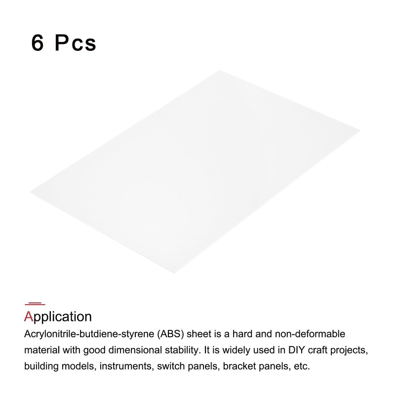 • In the package of: 6 Pcs x ABS Plastic Sheet ; Total size(LxWxT): 12 Inch x 8 Inch x 0.02 Inch / 30cm x 20cm x 0.5mm; Surface: Smooth; Color: White.