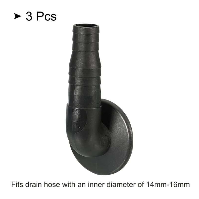 - Material: PP; Color: Black; Buckle Size: 19mm / 0.75 inch; Outer Diameter: 39mm / 1.54 inch; Barbed Outer Diameter: 13mm / 0.51 inch, fits drain hose with an inner diameter of 14mm-16mm; Total Height: 75mm / 2.95 inch