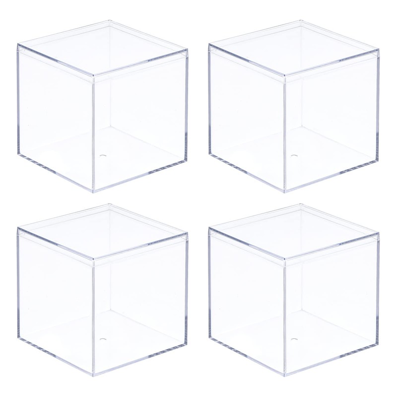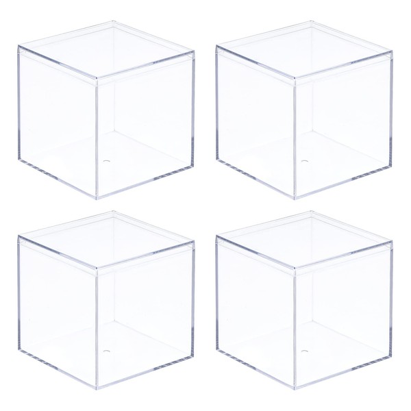 MECCANIXITY Clear Acrylic Plastic Storage Box Square Cube Display Case with Lid, 8.1x8.1x8.1cm Container Box for Small Item, Pack of 4