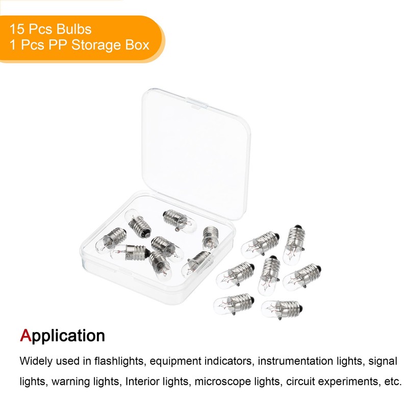 - The E10 screw bulb has low power consumption and strong shock resistance and long service life. This set come with a storage box, helping you keep the bulbs neat and clean, easier to find them next time.