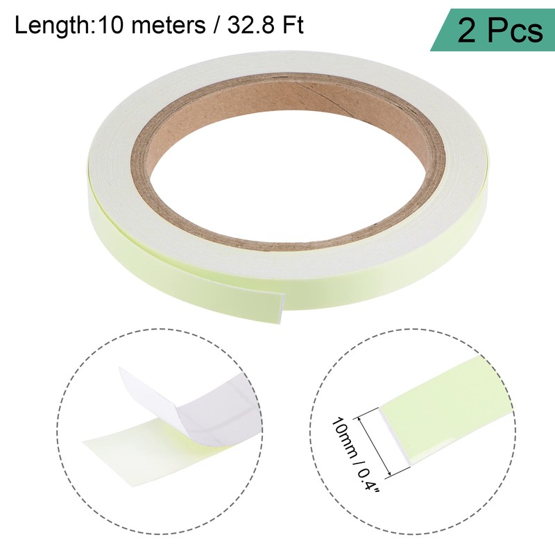 • With a 10 meters / 32.8 Ft length, 10mm / 0.4 inch width; Color: Green; In the package of 2 x Glow in the Dark Tape